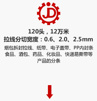 LFT120頭拉線分條機,主要用來生產(chǎn)1萬米煙包、食品、酒包、藥品、化妝品、磁帶、快遞袋等產(chǎn)品的包裝合或包裝袋的拆封拉線。